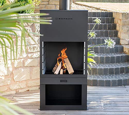 WESTMANN Terrassenofen & Grill | 70x41x229 cm Schwarz | Gartenkamin aus pulverbeschichtetem Stahl | Feuerstelle für Garten & Terrasse