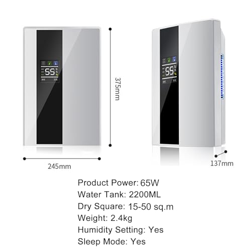Der Yclty Luftentfeuchter eignet sich ideal für große Räume und Keller sowie Schlaf- und Wohnbereiche. Mit der Dual-Core-Kondensationstechnologie entzieht das kompakte Gerät bis zu 500 ml Feuchtigkeit pro Tag und sorgt so zuverlässig gegen Feuchtigkeit, Schimmel und unangenehme Luftfeuchtigkeit. Der effiziente Betrieb verbraucht lediglich 65 W und erlaubt eine individuelle Einstellung der gewünschten Luftfeuchtigkeit. Das Gerät stoppt automatisch, sobald der Zielwert erreicht ist; liegt die aktuelle Luftfeuchte 5 % über dem Zielwert, schaltet es sich selbstständig wieder zu. Zur Sicherheit sorgt ein automatischer Abschaltschutz: erreicht der Wassertank seine maximale Kapazität, schaltet sich der Entfeuchter ab und die orange Leuchte macht Sie auf das Leeren des Tanks aufmerksam. Drei Arbeitsmodi (Schlaf, Timer, Abtauen) bieten flexiblen Komfort; bei Temperaturen unter 15 °C empfiehlt sich der Enteisungsmodus, um auch im Winter eine effektive Innenentfeuchtung zu gewährleisten. Der Tanks lässt sich per externem Abfluss betreiben oder kontinuierlich entleeren; im Lieferumfang ist ein Abflussschlauch enthalten. Mit einem Tankvolumen von 2,2 Litern kann der Entfeuchter Räume von 15–50 Quadratmetern abdecken. Maße: ca. 24,5 x 13,7 x 37,5 cm; Farbvarianten in Weiß, Schwarz, Grau oder Edelstahl ergänzen jedes Umfeld.