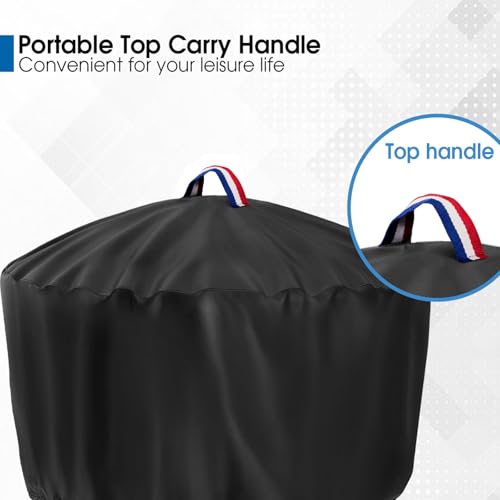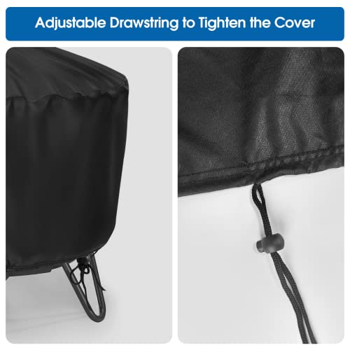 Runde Feuerschalenabdeckung aus 600D Oxford-Tuch mit Innenbeschichtung, wasserdicht und reißfest. Griffe, Lüftungsschlitze, einziehbarer Kordelzug und Nylonverriegelungen für winddichten Schutz.