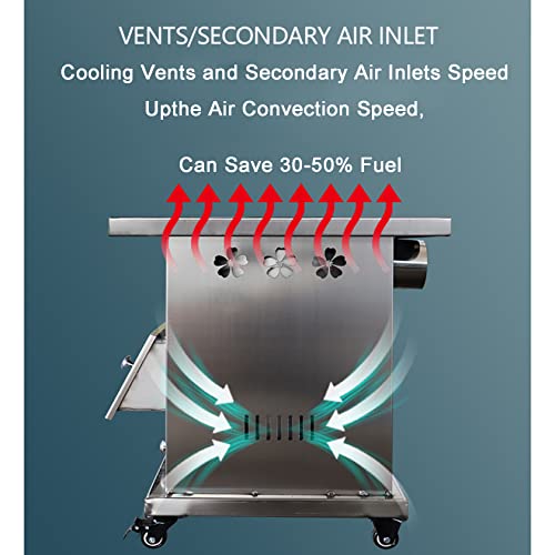 YYUINU Zweilagiger Energiesparender Vergasungs- Holzofen, Rauchfreier Holzofen, Multifunktions- Heizofen, Mit Schornstein, Verbrühschutznetz, Handgefertigter Eisentopf, 50CM